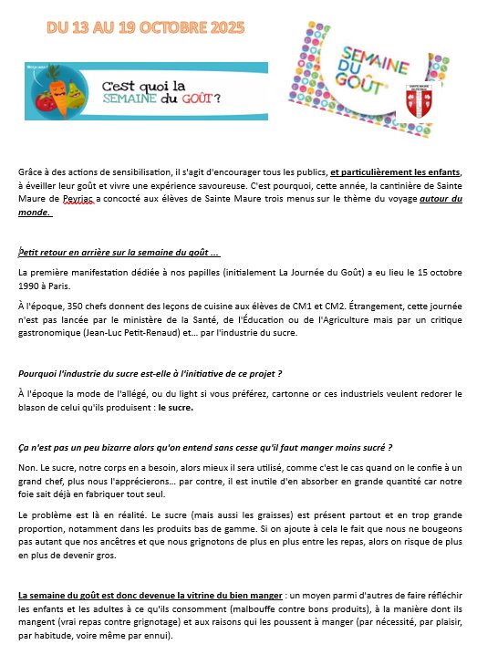 MENU CANTINE - SAINTE MAURE DE PEYRIAC - OCTOBRE 2025