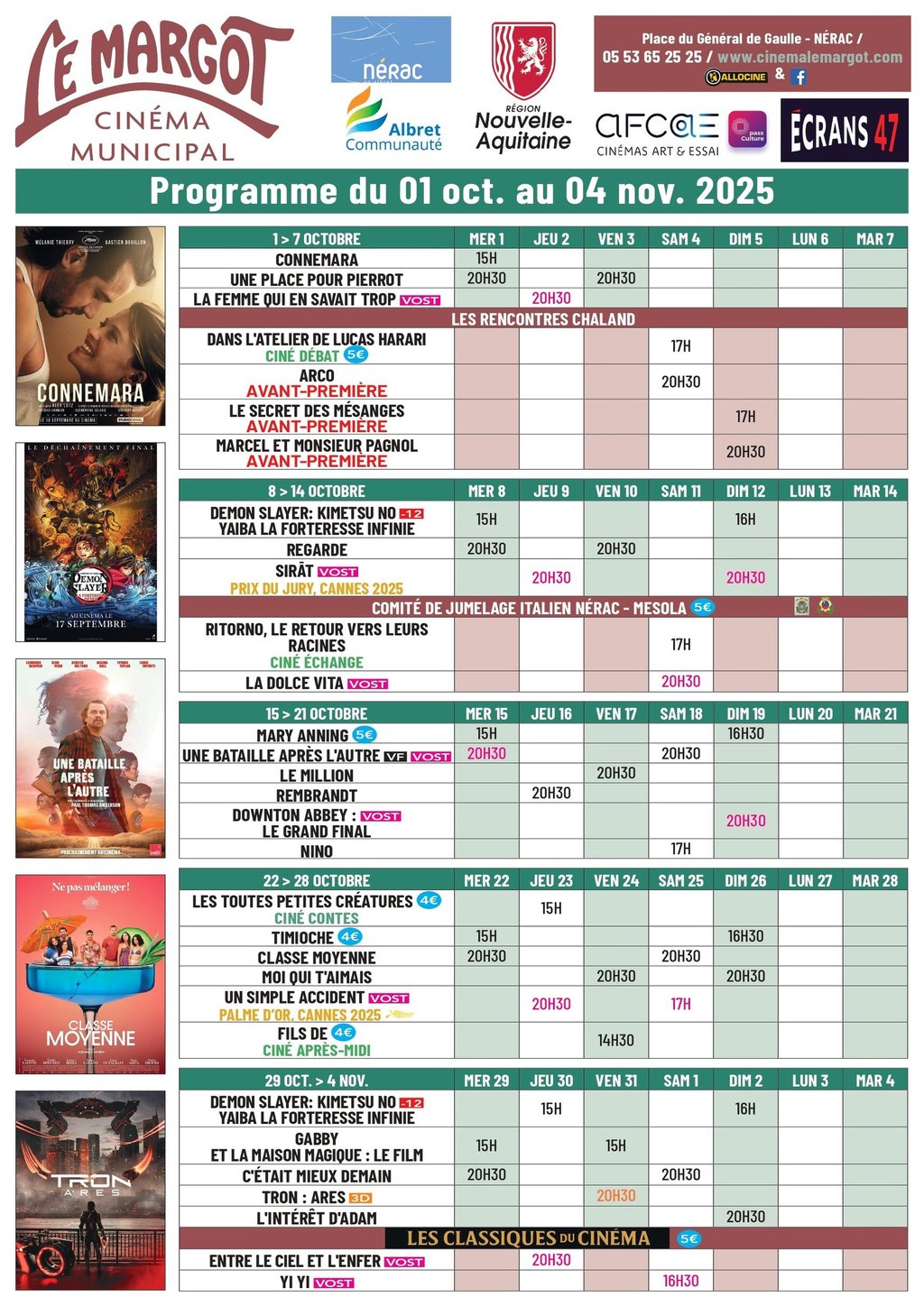CINÉMA LE MARGOT NERAC : PROGRAMMATION OCTOBRE 2025