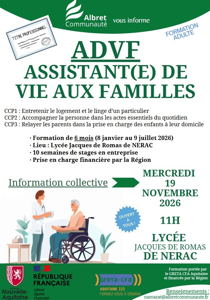 FORMATION ADULTE : ASSISTANT(E) VIE AUX FAMILLES