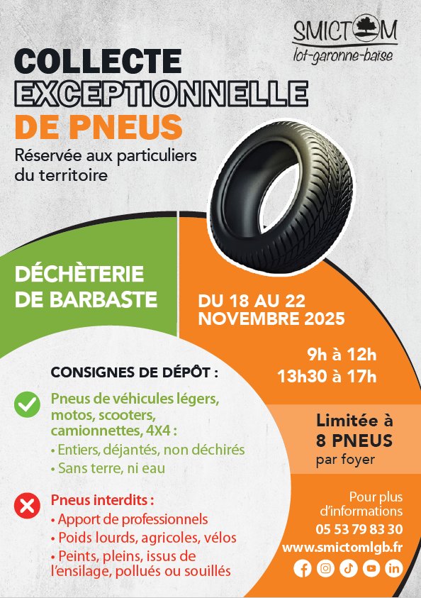 COLLECTE EXCEPTIONNELLE DE PNEUS - DÉCHÈTERIE DE BARBASTE
