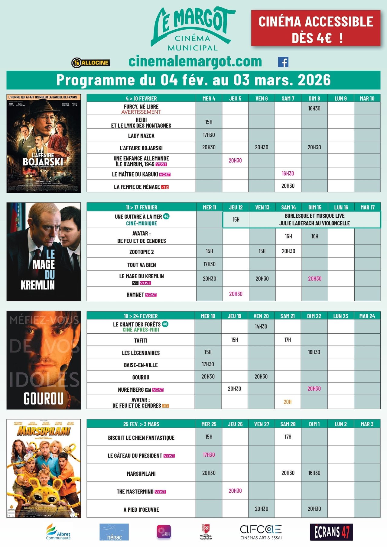🎬 CINÉMA LE MARGOT NERAC : PROGRAMME MARS 2026 📽