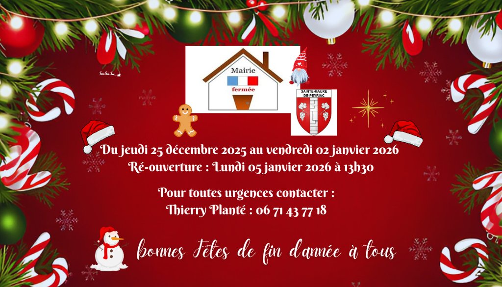 FERMETURE MAIRIE SAINTE-MAURE-DE-PEYRIAC