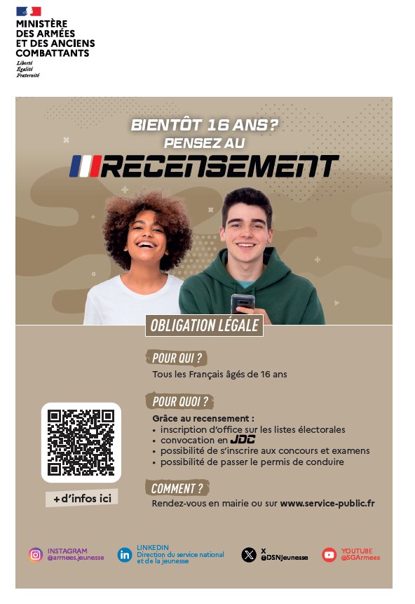 📢 Penser au recensement des jeunes dès 16 ans !