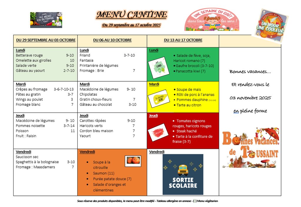 MENU ÉCOLE PUBLIQUE DE SAINTE-MAURE-DE-PEYRIAC SEMAINE DU GOÛT