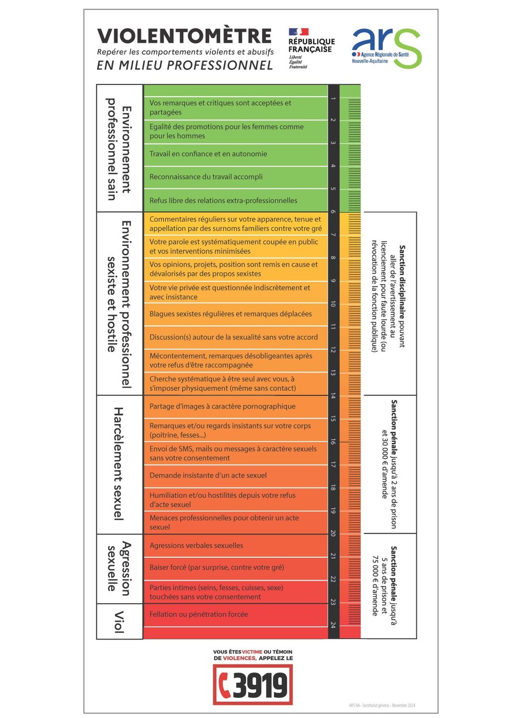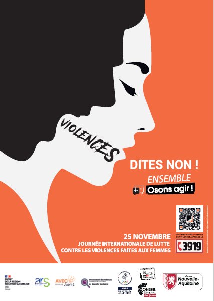 Depuis maintenant 6 ans, la Région mène une campagne de prévention et de sensibilisation grand public aux côtés des partenaires institutionnels et associatifs ; en parallèle elle s’attache à la diffuser en interne au plus près des personnels de la collectivité. Pour cette édition 2025, ont été associés les services de l’État (DRDFE - Délégation régionale aux droits des femmes et à l’égalité Nouvelle-Aquitaine, les trois rectorats de Nouvelle-Aquitaine), le Comité régional olympique et sportif de Nouvelle-Aquitaine (CROS), l’Observatoire régional des violences sexistes et sexuelles de Nouvelle-Aquitaine (ORVSS), l’Agence Régionale de Santé, l’Association Avec Santé et le CRJ, le Conseil Régional des Jeunes.