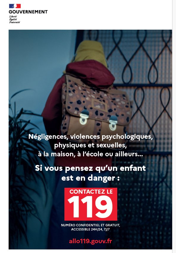 ailleurs, si vous pensez qu’un enfant est en danger : contactez le 119 »