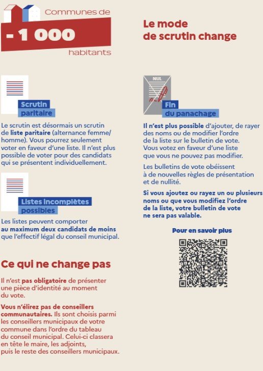 Mode de scrutin (2026) : Scrutin de listes, avec parité et prime majoritaire