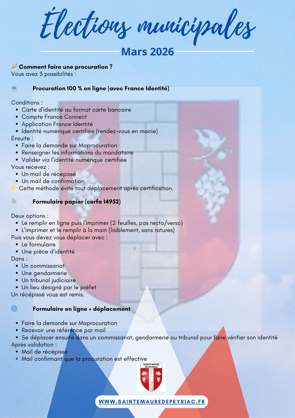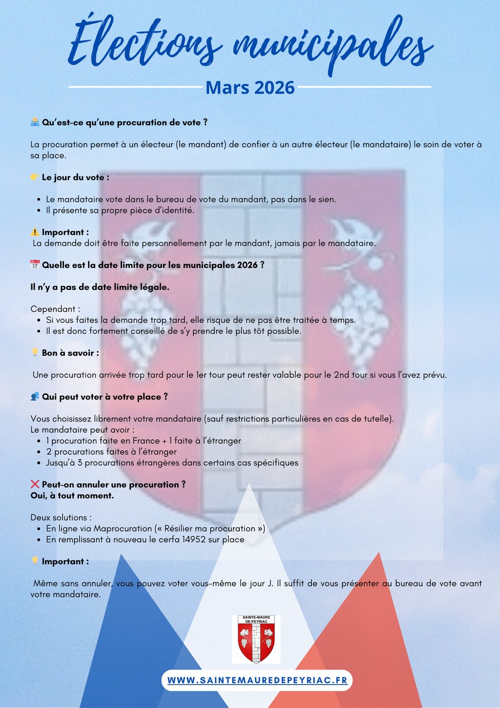 PROCHAINES ÉLECTIONS MINICIPALES - VOTE PAR PROCURATION