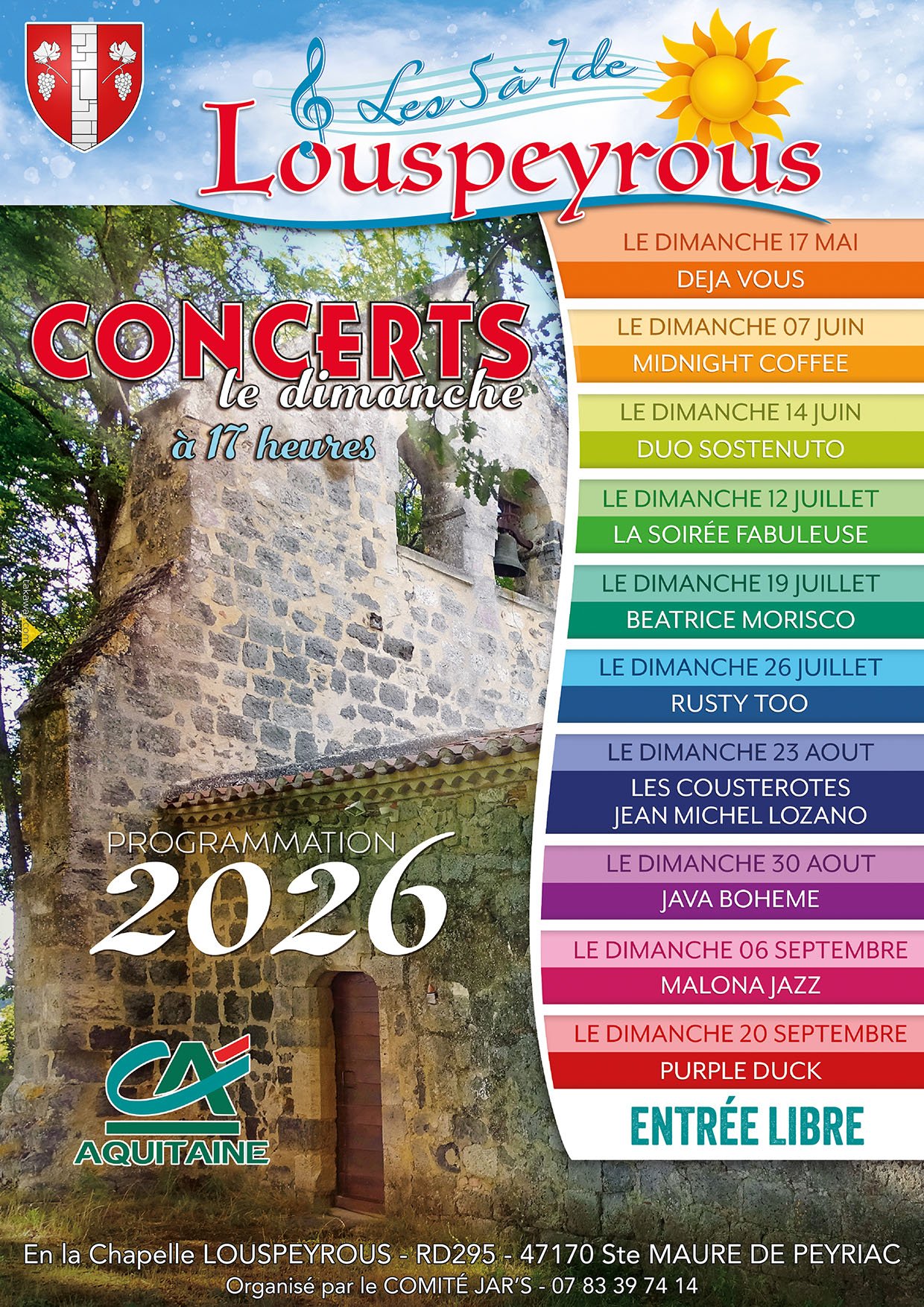 🎶PROGRAMMATION 2026 : LES 5 À 7 DE LA CHAPELLE DE LOUSPEYROUS 🎶