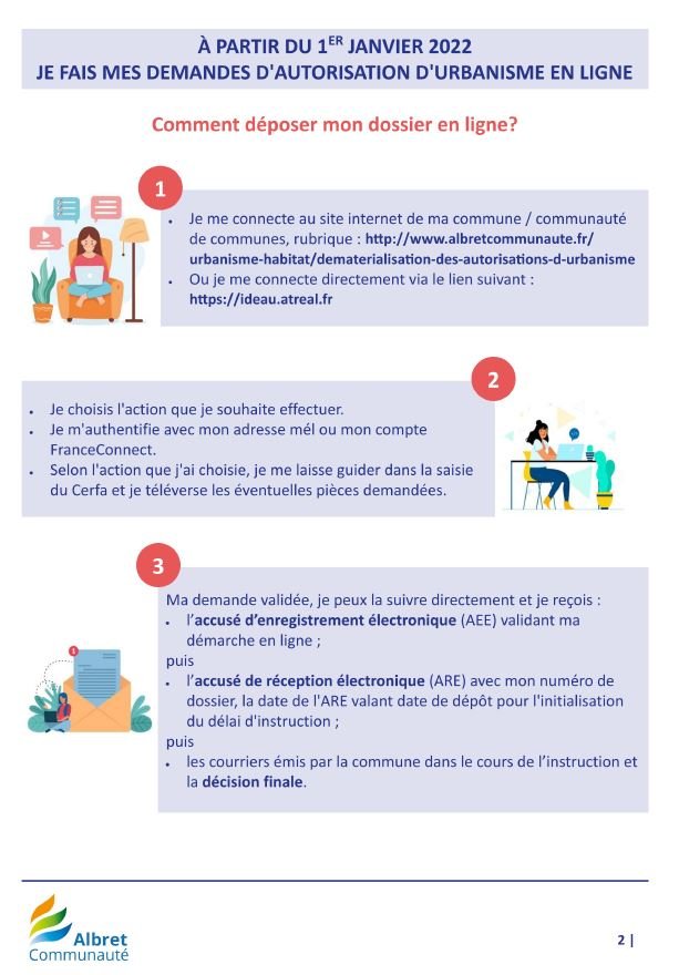 Vous pouvez déposer vos demandes d'autorisations d'urbanisme en ligne sur le site https://ideau.atreal.fr/